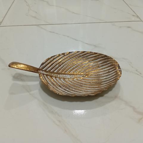 VASO DECORATIVO CERAMICA COM APLICACAO FOLHAS (BRANCO DOURADO) 46X22X9CM (FLORARTE) VOL. 1 A 16 - 36585