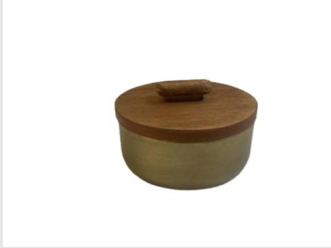 POTES DE METAL E MADEIRA MARROM E DOURADO M