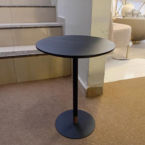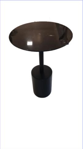 MESA LATERAL ARGELIA 450 - LACA GRAFITE - METAL COR PRETO - TAMPO REDONDO CINAMOMO COR CARVALHO