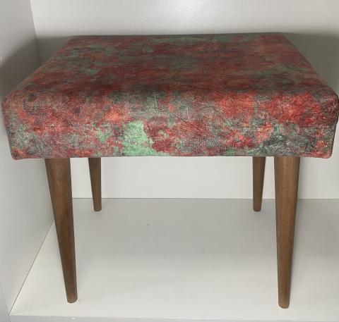 BANCO EM METAL E TECIDO PRETO E DOURADO
