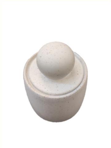 VASO DE CERAMICA BRANCO COM CINTO DE COURO 13CM X 12CM X 13,