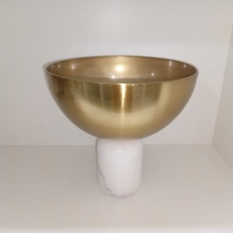 CENTRO DE MESA EM METAL DOURADO BASE MARMORE BRANCO