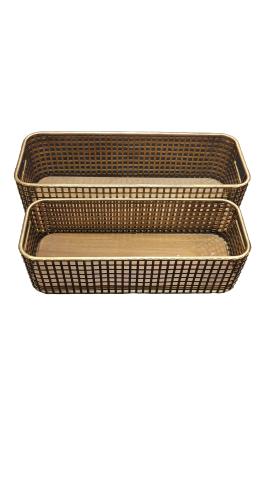CJ DE CESTAS EM MADEIRA E METAL DOURADO 2PCS34296