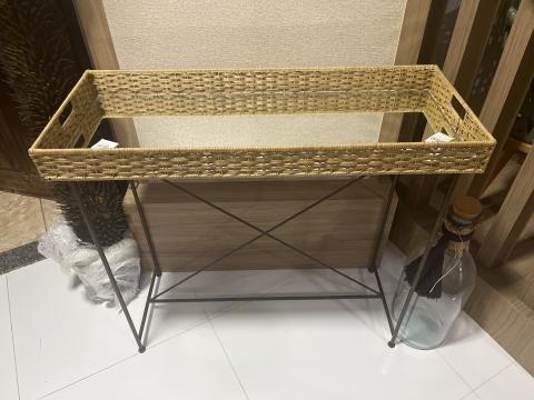 MESA DE APOIO DALLAS (2024) - 0,9X0,5X0,4H/ET. ALUMINAS AL: BEGE ESCURO TAMPO ALUMINIO LISO