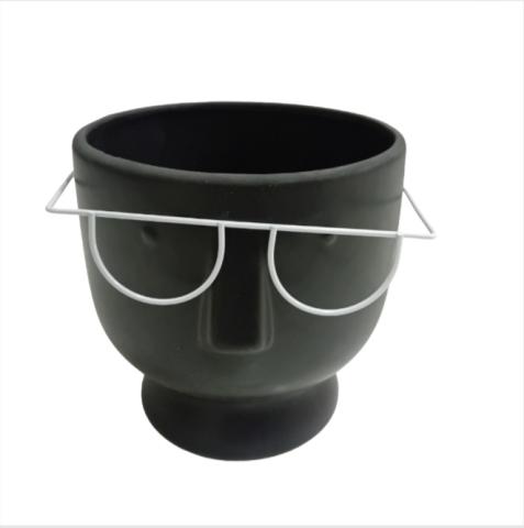 VASO DE CERAMICA ESTILO MADEIRA COM FORMATO DE ROSTO 10,5CM