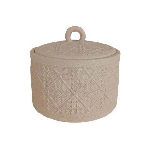 VASO DE CERAMICA BRANCO COM CINTO DE COURO 13CM X 12CM X 13,