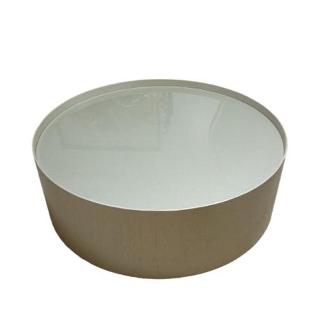 MESA CENTRO DROP 0,90 BAIXA C/ VIDRO - HONEY C/ VERNIZ - V. OFF WHITE VIDRO OFF WHITE