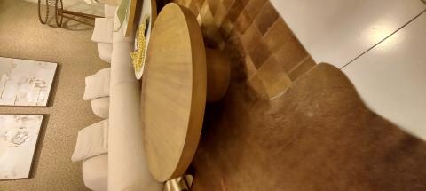 PIETRA MESA 65 D CFG: COR DO TAMPO: MARMORIZADO BEGE/COR DA BASE: EPOXI DOURADO XS-1028/EMBALAGEM: L