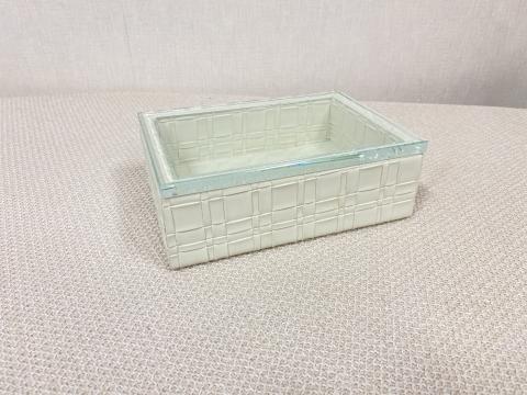 VASO DECORATIVO EM CERAMICA BRANCO COM LISTRAS BEGE - 36955