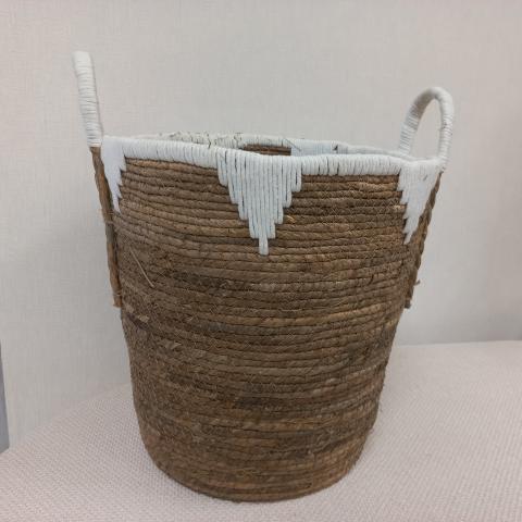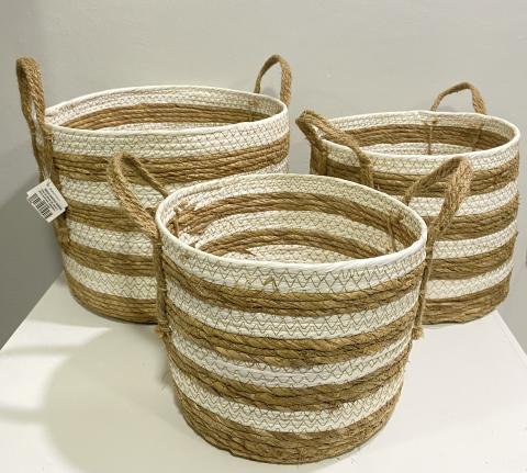 CONJ DE CESTOS DE JUNCO E PAPEL NATURAL E BRANCO - 3 PCS