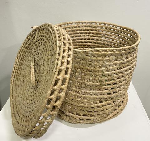 CESTO COM TAMPA EM PALHA NATURAL NATURAL