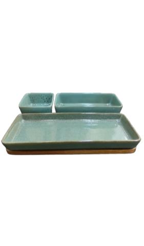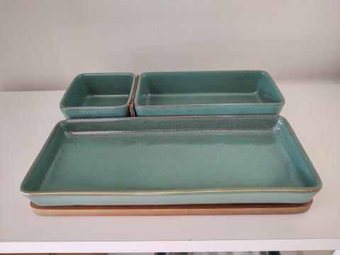 CJ DE TRAVESSAS DE CERAMICA VERDE RETANGULAR 3PCS