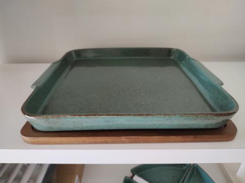 PETISQUEIRA EM MADEIRA E CERAMICA VERDE COM 1 TRAVESSA
