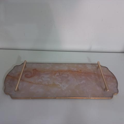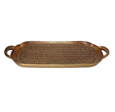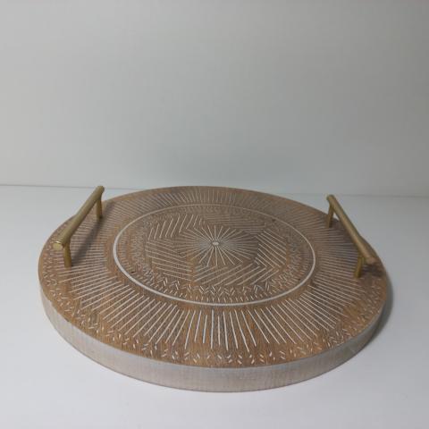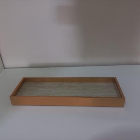 BANDEJA DE MADEIRA COM METAL DOURADO - P