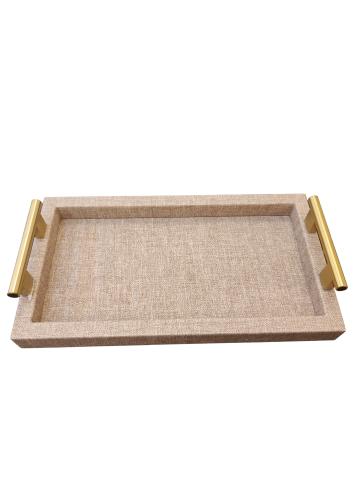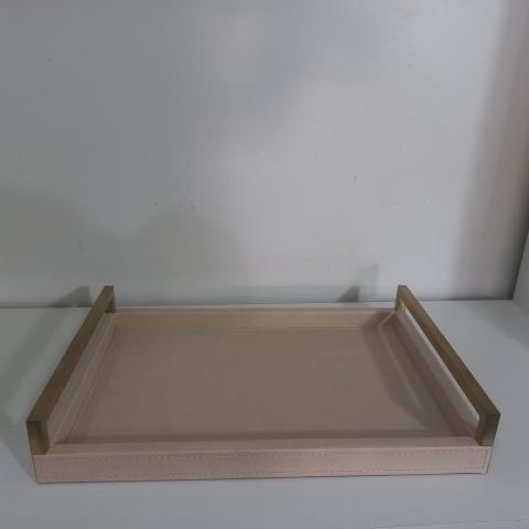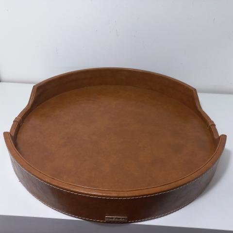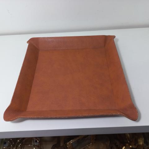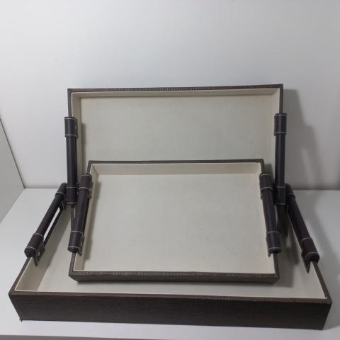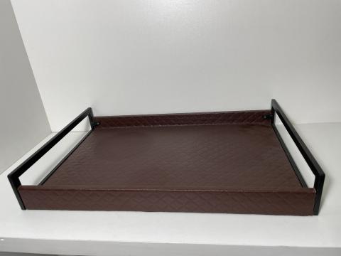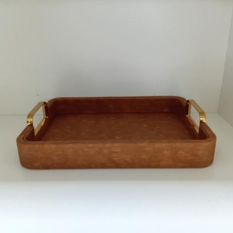 BANDEJA DE METAL REVESTIDA COM TECIDO ESTILO COURO