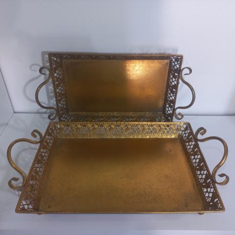 72943 - CONJUNTO DE 2 BANDEJAS DECOR. EM METAL DOURADO