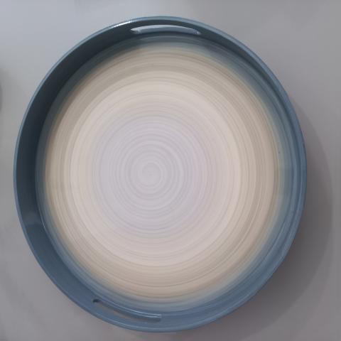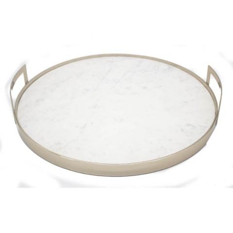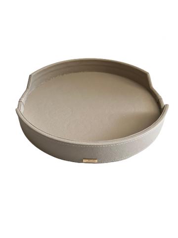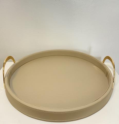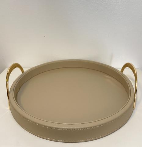 BANDEJA REDONDA EM RESINA ESTILO TRAVERTINO BEGE