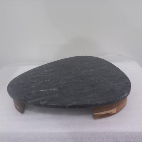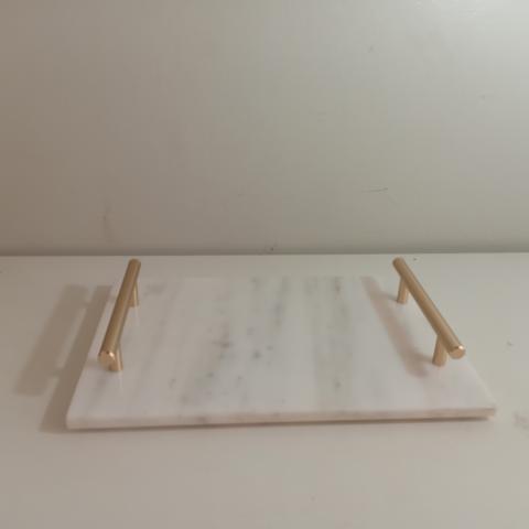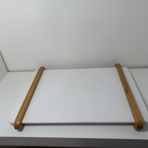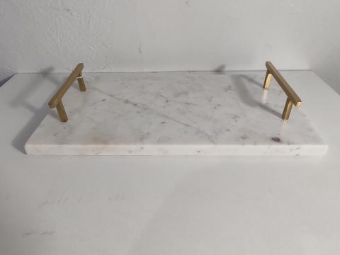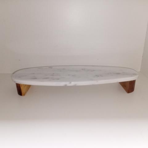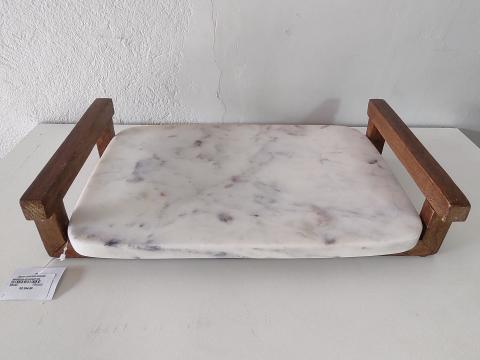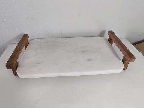 BANDEJA EM MADEIRA E MARMORE BRANCO