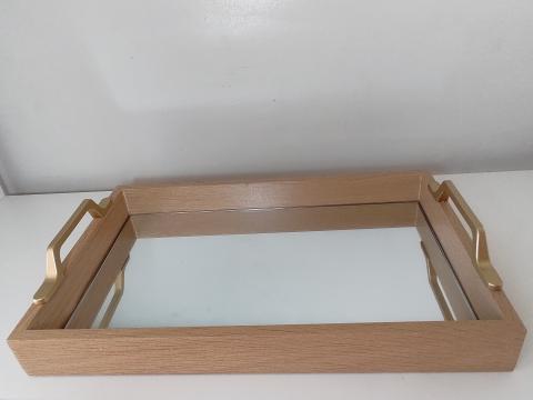 BANDEJA DE MADEIRA COM ESPELHO