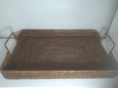 BANDEJA 35X25 PRETA C/ ALCA INOX DEC.