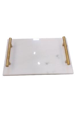 BANDEJA NAIA - DOURADA - VIDRO BRANCO - 21,5 X 37 X 5 CM