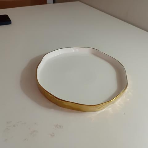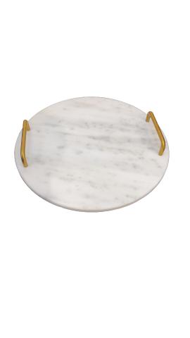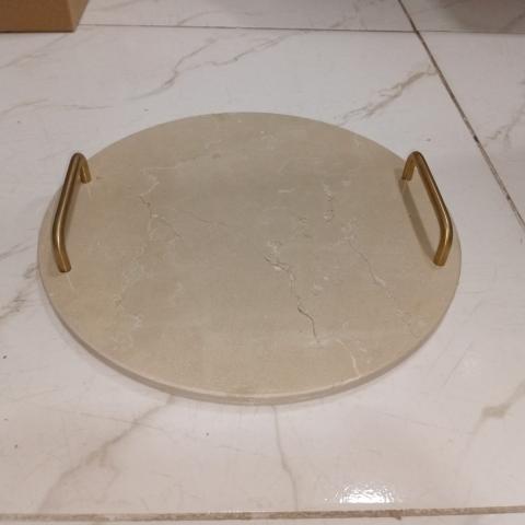 BANDEJA REDONDA EM MARMORE BEGE E DOURADO