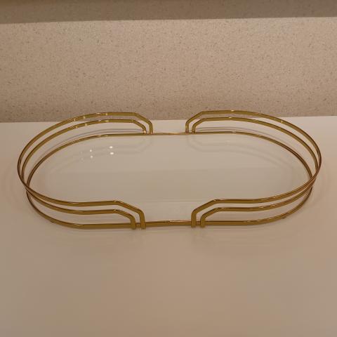 BANDEJA AYLA - 30,5 X 55 X 6 CM - DOURADA - VIDRO BRANCO