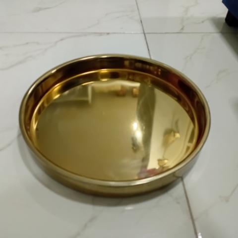 BANDEJA REDONDA ACO POLIDO COM ESPELHO 38X38X5,5CM MR-15528*