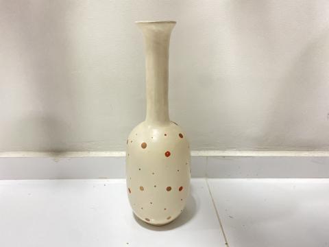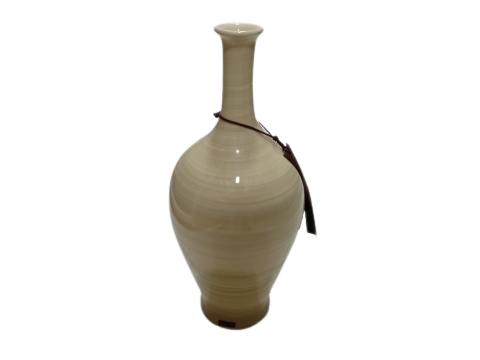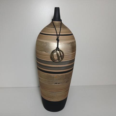 77717 - VASO EM CERAMICA BEGE TEXTURIZADO COM LINHAS PRETAS