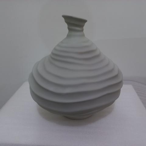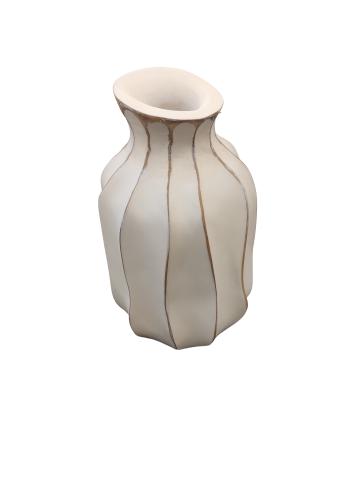 77745 - VASO EM CERAMICA BRANCO TEXTURIZADO COM LINHAS PRETAS G