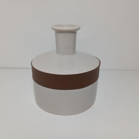 VASO DE CERAMICA BRANCO COM CINTO DE COURO 13CM X 12CM X 13,