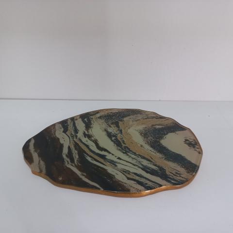 DEKOR-RAW-CENTRO DECORATIVO-41 CM-MARMORE BRANCO E PRETO COM BORDA OURO 670041.MMBRPTBOR