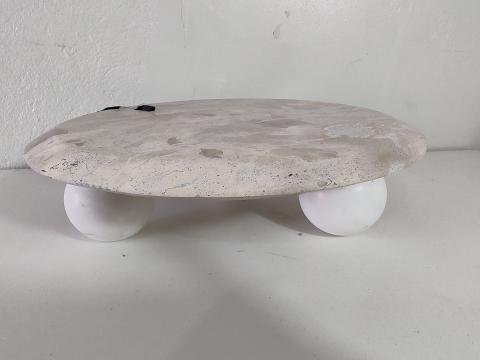 CENTRO DE MESA EM CERAMICA BRANCO DETALHE ESFERAS