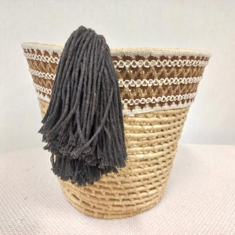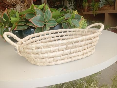 CESTO DE JUNCO E PAPEL NATURAL E BRANCO - M