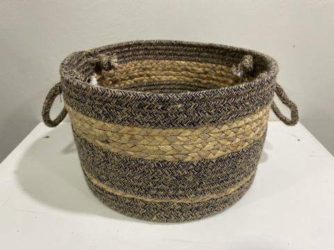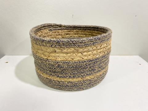 CESTO P EM ALGODAO E FIBRA NATURAL - NATURAL CINZA