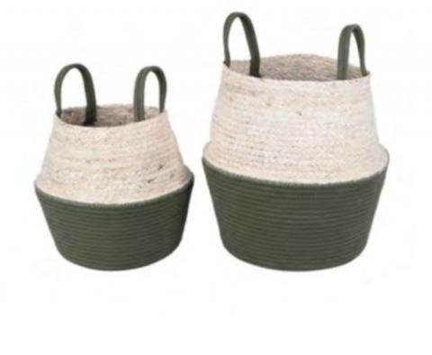 CESTO EM ALGODAO E FIBRA NATURAL - 2PCS NATURAL VERDE