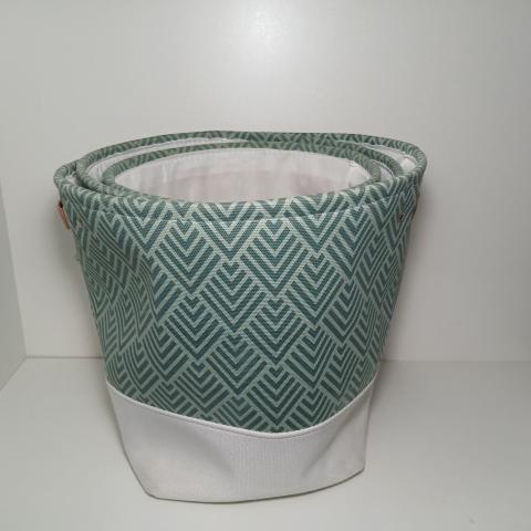 CJ DE CESTOS COM ALCA E TECIDO DE ALGODAO VERDE E BRANCO 3P