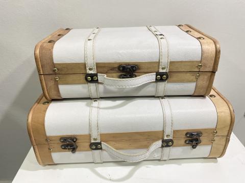 CJ DE MALETAS DE MADEIRA E METAL MARROM E BRANCO 2PCS23560