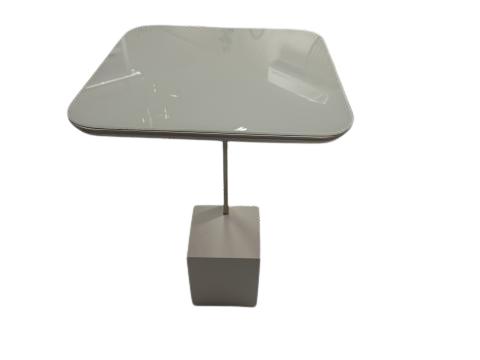 MESA LATERAL TORRE 50X50X48 VIDRO DESLOCADO VIDRO INCOLOR BASE OFFWHITE