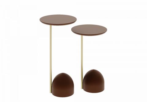 MESA LATERAL DIAMANTINA BAIXA 320 - LACA FENDI NOBRE - TAMPO REDONDO LIGHT MDF CHAMPANHE - HASTE MET