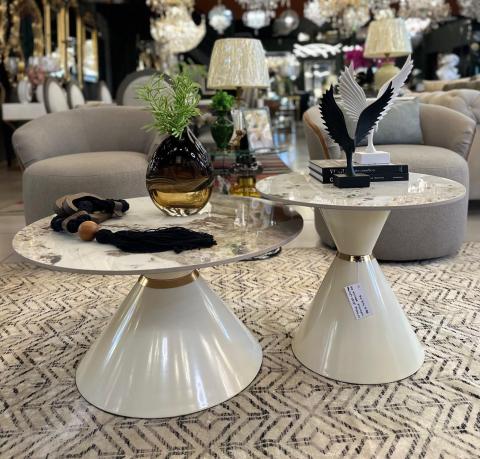 FT9442 JOGO C/2 MESAS DE CENTRO CERAMICA BRANCA 80D 60D
