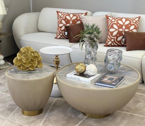 FT9443 JOGO C/2 MESAS DE CENTRO CERAMICA/METAL 80D 45D